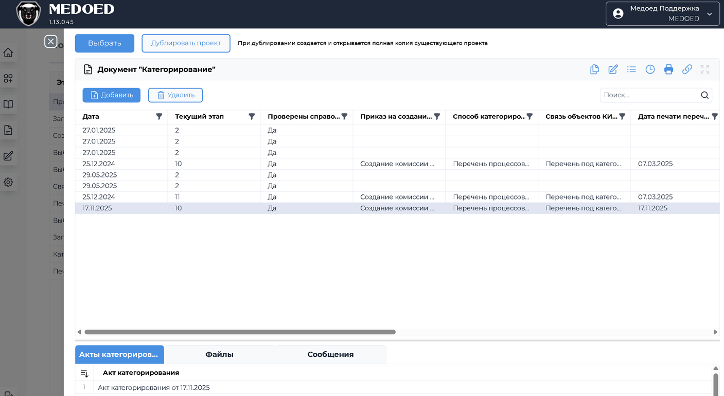 Теперь Вы можете перенести данные с предыдущих процессов Категорирования, продублировав старый проект (рисунок 1).