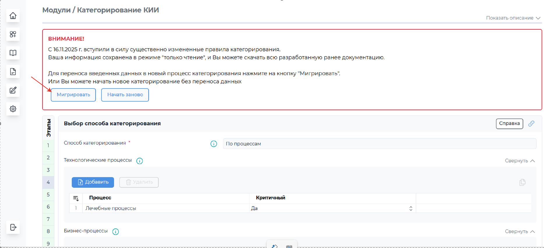 А также совершить миграцию со старых процессов, выполненных по правилам выбора критических технологических процессов (рисунок 2).