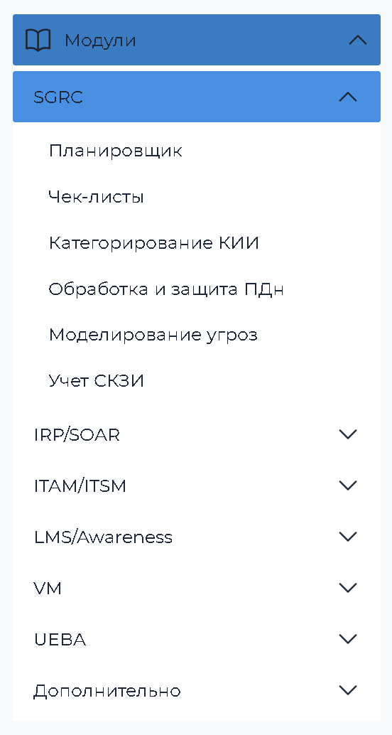 Для удобства пользователей также был обновлен внешний вид меню основных модулей: теперь они распределены по классам решений.