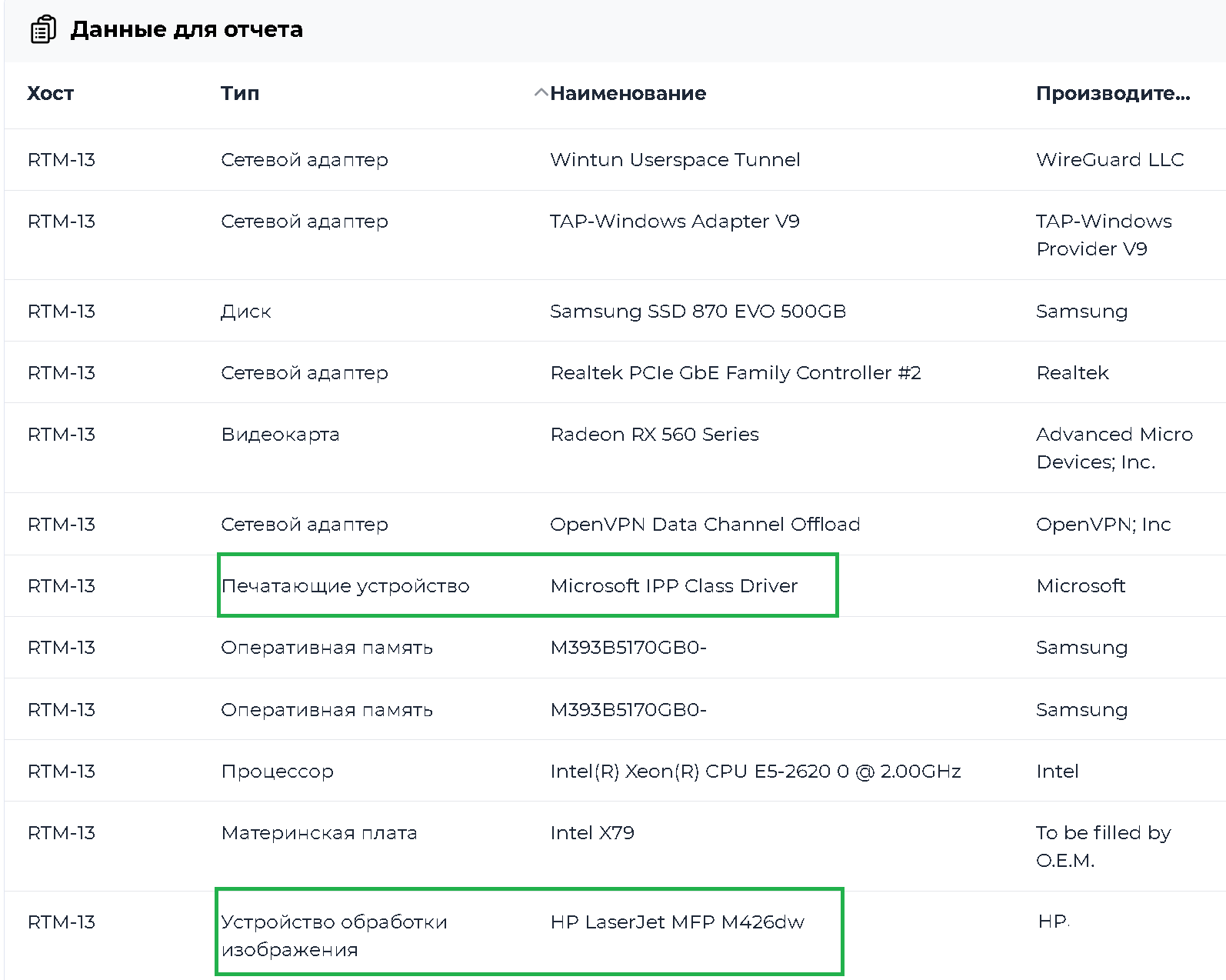 Кроме того, в список анализируемого оборудования добавлены принтеры и сканеры. Это расширяет охват инвентаризации и помогает получать более полную картину инфраструктуры.